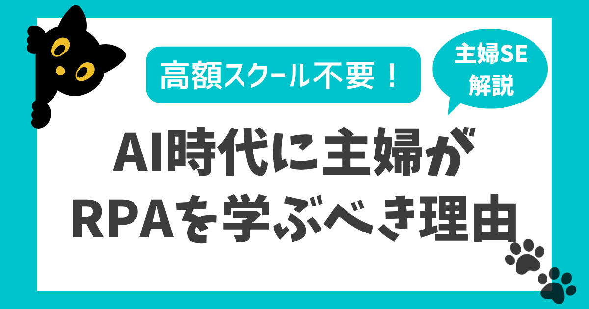 この記事では、実際に派遣会社のRPA研修を受講し、現在RPAエンジニアとしてフルリモート派遣で働いている私が、AI時代に主婦が本当に身につけるべきスキルとしてRPA(業務自動化)をおすすめする理由をお伝えします。