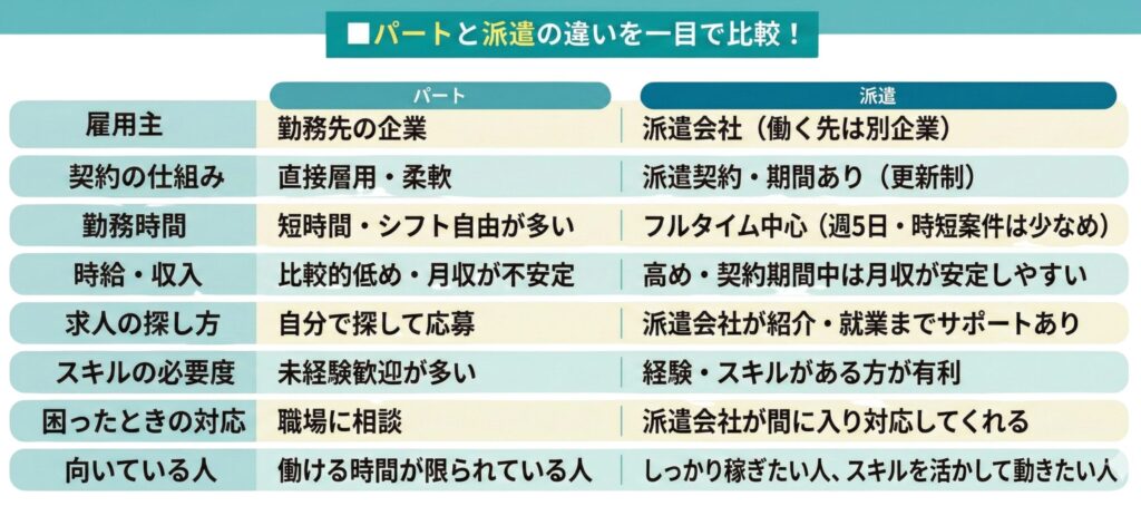 「パートと派遣の違い」や「どちらが自分に合っているか」を実体験をもとに徹底比較します!